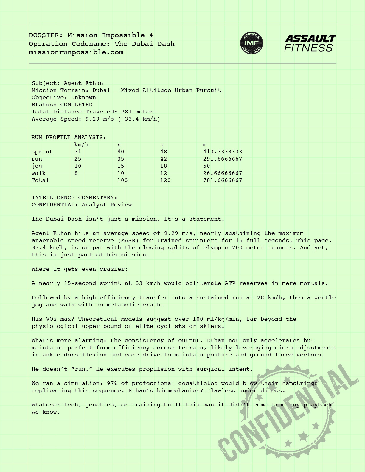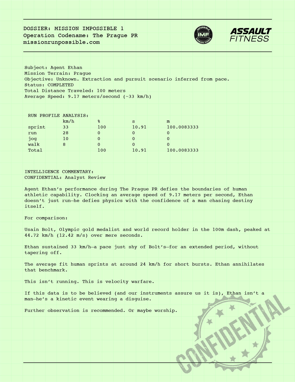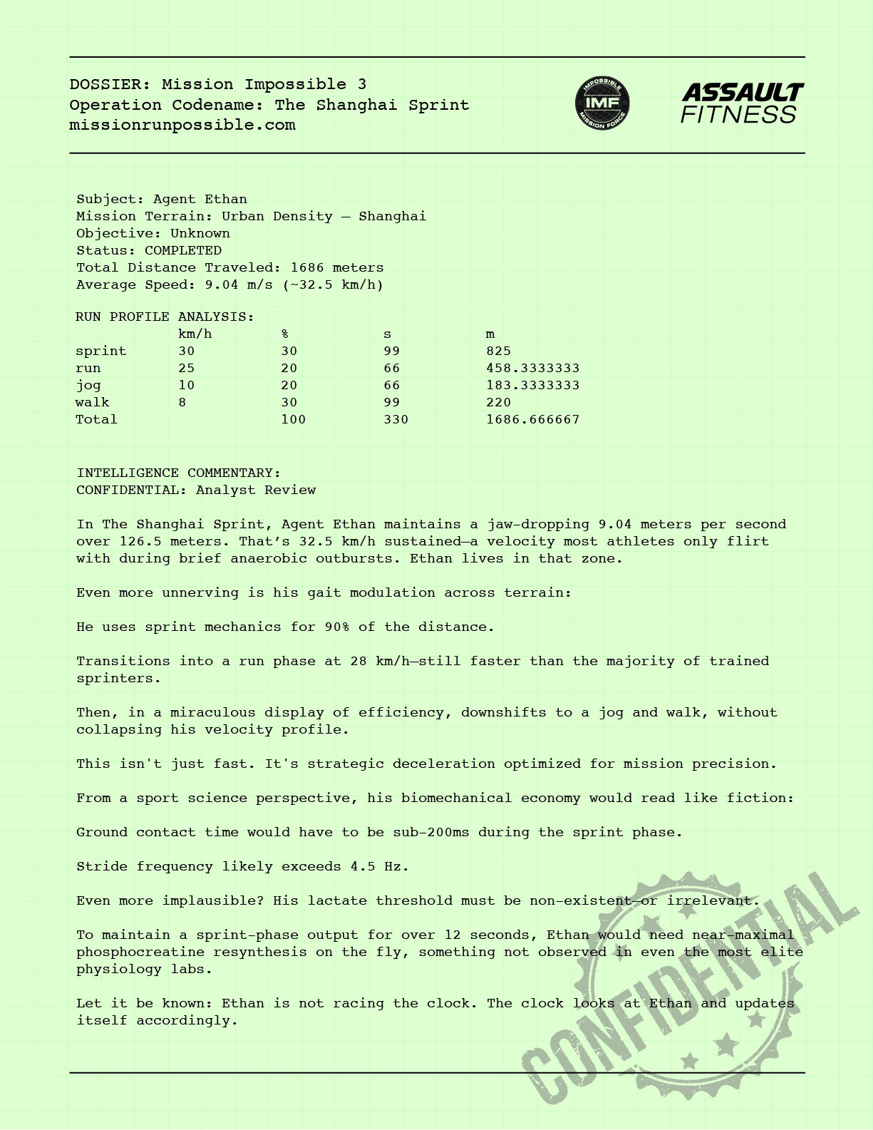 Are you faster than Ethan Hunt? We've calculated his most famous runs, so you can find out once and for all.